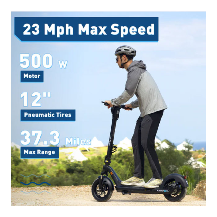 Power meets comfort in the Hiboy X300 Big-Wheel. With its large 12-inch tires, strong 500 W motor (700 W peak), and long-range battery, this scooter is designed for serious performance. Whether you’re cruising through the city or tackling rough roads, the X300 delivers smoothness, control, and power. Braking is reliable, visibility is excellent with LED lighting and signals, and it handles inclines up to 25° with confidence. For riders who expect more than ordinary, this is your ride.